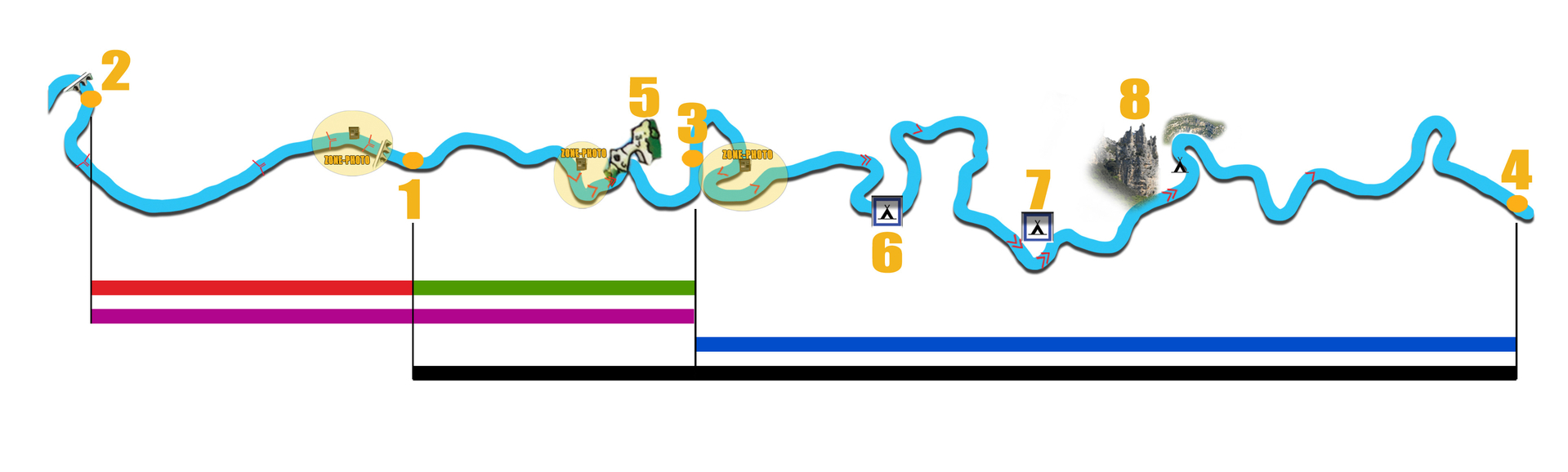 - Parcours longue distance : 36 km sur 2 jours avec bivouac, 7h à 8h de pagaie au total.